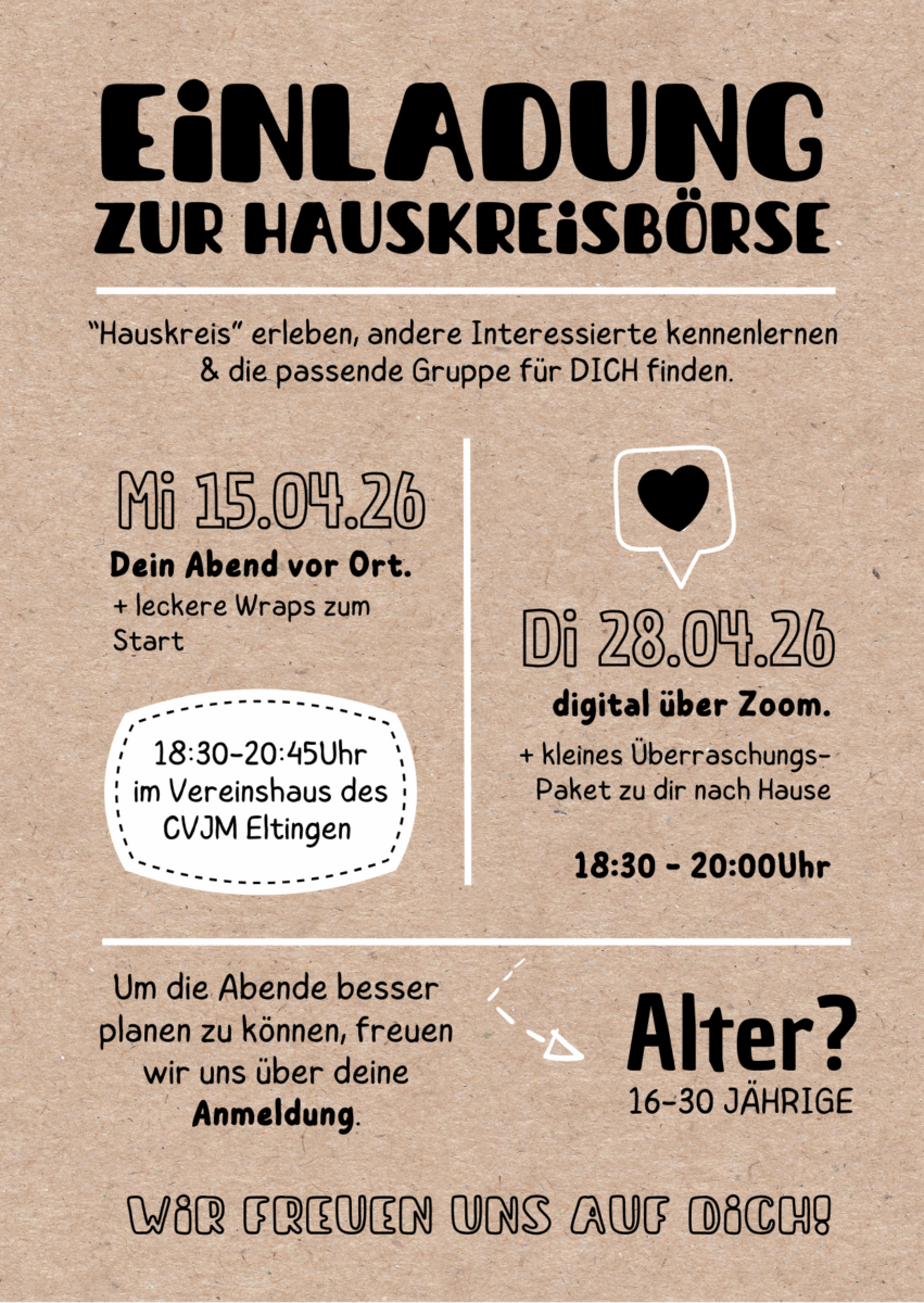 Dann komm zu unserer Hauskreisbörse! An 2 Abenden hast du die Möglichkeit die passende Kleingruppe für dich zu finden ✌🏼